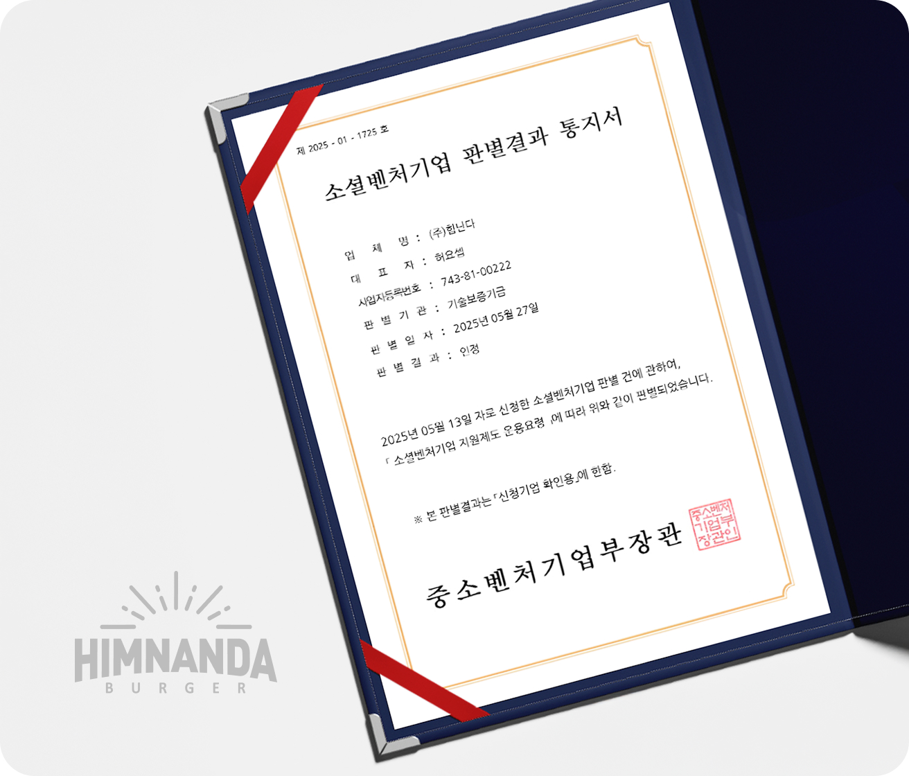 (주)힘난다는 힘난다 버거가 지난 10년간 쌓아온 노하우를 바탕으로